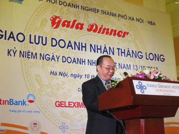 TS. Nguyễn Hồng Sơn - ĐBQH, Chủ tịch HBA, VACOD phát biểu tại "Gala Doanh nhân Thăng Long 2013".